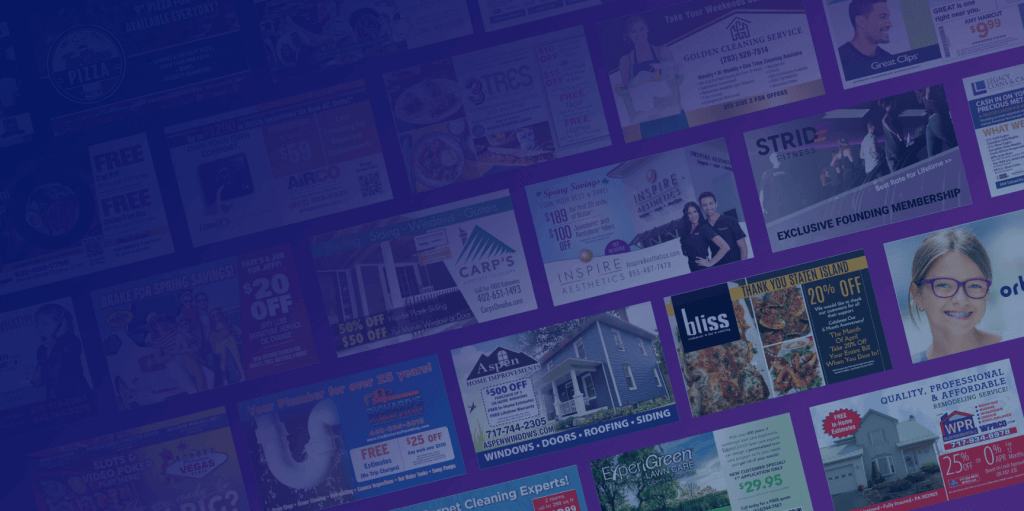 The creative design team behind The Blue Envelope (Valpak envelope) custom designs each PlusOne postcard mailer.